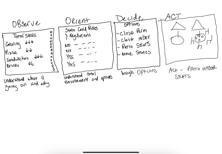 Natoli’s Italian Deli was able to survive the pandemic because they acted swiftly to rapidly changing events that affected their business. Once they started to see revenues were decreasing, the management team quickly oriented themselves with pandemic rules and regulations within their jurisdiction. They then were able to weigh the pros and cons of various options/alternatives. Once they decided on the best option, they quickly implemented it and it was successful. It has allowed them to stay open during and after the pandemic and it had an unexpected bonus – customers loved the outdoor seating area and it has since been a permanent part of the Natoli experience.